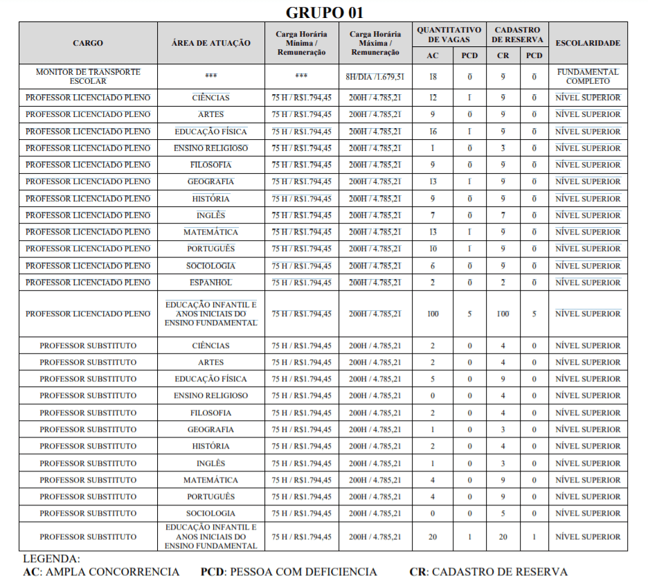 Segundo o edital, os candidatos inscritos para o GRUPO 01, em caso de CLASSIFICADOS, serão lotados, conforme a necessidade da Rede Municipal de Ensino (RME) em qualquer Unidade de Ensino do DABEL, DAGUA, DABEN, DASAC, DAENT e DAICO. Para o GRUPO 02, em caso de CLASSIFICADOS, serão lotados, conforme a necessidade da Rede Municipal de Ensino (RME) em qualquer Unidade de Ensino do Distrito de Mosqueiro, que compreende também as seguintes Comunidades: Carananduba, Baía do Sol, Sucurijuquara, Paraiso, Caruaru e Comunidade Agro-Ecológica Nova Esperança das Barreiras (Bacabeira). E para o GRUPO 03, em caso de CLASSIFICADOS, serão lotados, conforme a necessidade da RME em qualquer Unidade de Ensino do Distrito de Outeiro, bem como as Ilhas de: Cotijuba, Combú, Itaiteua, Ilha Grande do Baixo Acará e Comunidade de Várzea de Belém.