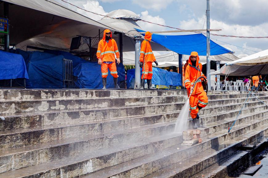 Foram recrutados 25 agentes da limpeza urbana da Sesan, que ficaram responsáveis por fazerem uma limpeza completa em todos os setores do Ver-o-Peso.