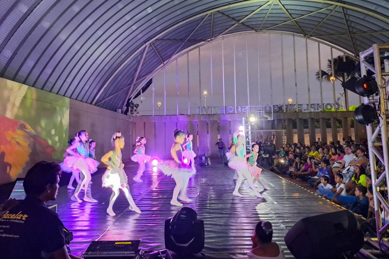 Alunos dos cursos de dança da Usina da Paz Icuí-Guajará, no município de Ananindeua, participaram na noite desta quarta-feira (14) da Mostra de Dança “Somos Floresta”, realizada na quadra poliesportiva da Usipaz. Todos os alunos de dança da Usina participaram em apresentações de balé clássico, dança contemporânea, danças urbanas e ritmos, tendo a floresta como tema.