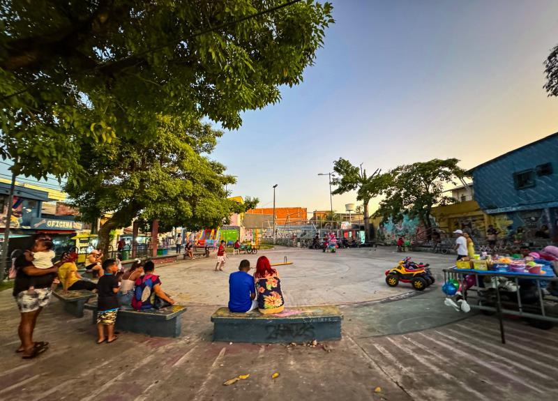 A praça Benedito Monteiro, no Guamá, também foi espaço para lazer no domingo. A quadra lotada animou o pequeno Cleiton Vitor, de 11 anos, que estava acompanhado da irmã e da avó. “Gosto de estar aqui, brincar na quadra com os meus amigos, comer o lanche que minha avó paga”, brincou.