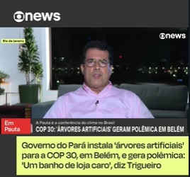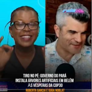“O uso das estruturas foi necessário porque o solo na região é muito raso para o plantio de árvores naturais. Olha essa coragem de dar essa justificativa, que desculpinha ruim, hein?”, comentou a jornalista Roberta Garcia, do Portal ICL Notícias. “Essa solução, em plena COP, que vai debater as mudanças climáticas, vai na contramão de tudo, do próprio propósito do evento”, disse a jornalista.