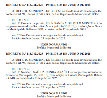 Foi publicada nesta quarta-feira (25/6), a saída da titular da Guarda Municipal de Belém, Elen Sandra de Melo Monteiro. A exoneração acontece um dia depois de ser divulgada, pela gestão Igor Normando (MDB), um conjunto de medidas que retiram direitos da categoria. No lugar de Ellen, foi anunciado Esaú Costa Araújo.