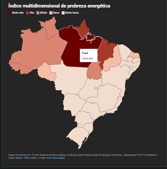 O Pará, junto com Amapá e Maranhão, lidera o ranking de pobreza energética no Brasil, segundo o relatório “Encruzilhada Climática: Um Retrato das Desigualdades Brasileiras”, publicado na segunda-feira (6) pela Oxfam Brasil. A pesquisa revela que famílias desses estados enfrentam dificuldades tanto para acessar eletricidade de forma regular quanto para pagar as contas de energia, mesmo vivendo em uma das regiões mais ricas em recursos hídricos e produção de energia do país.